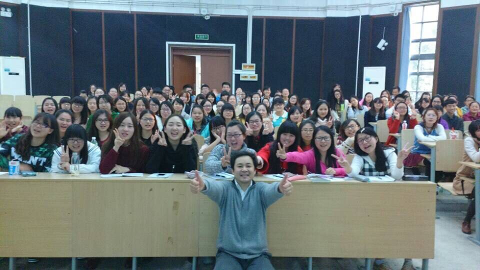 1122笈川日语培训公司社长笈川幸司在第一教学楼为我院日语系二、三年级学生作了一次如何学习日语、如何提高日语学习兴趣的讲座。
