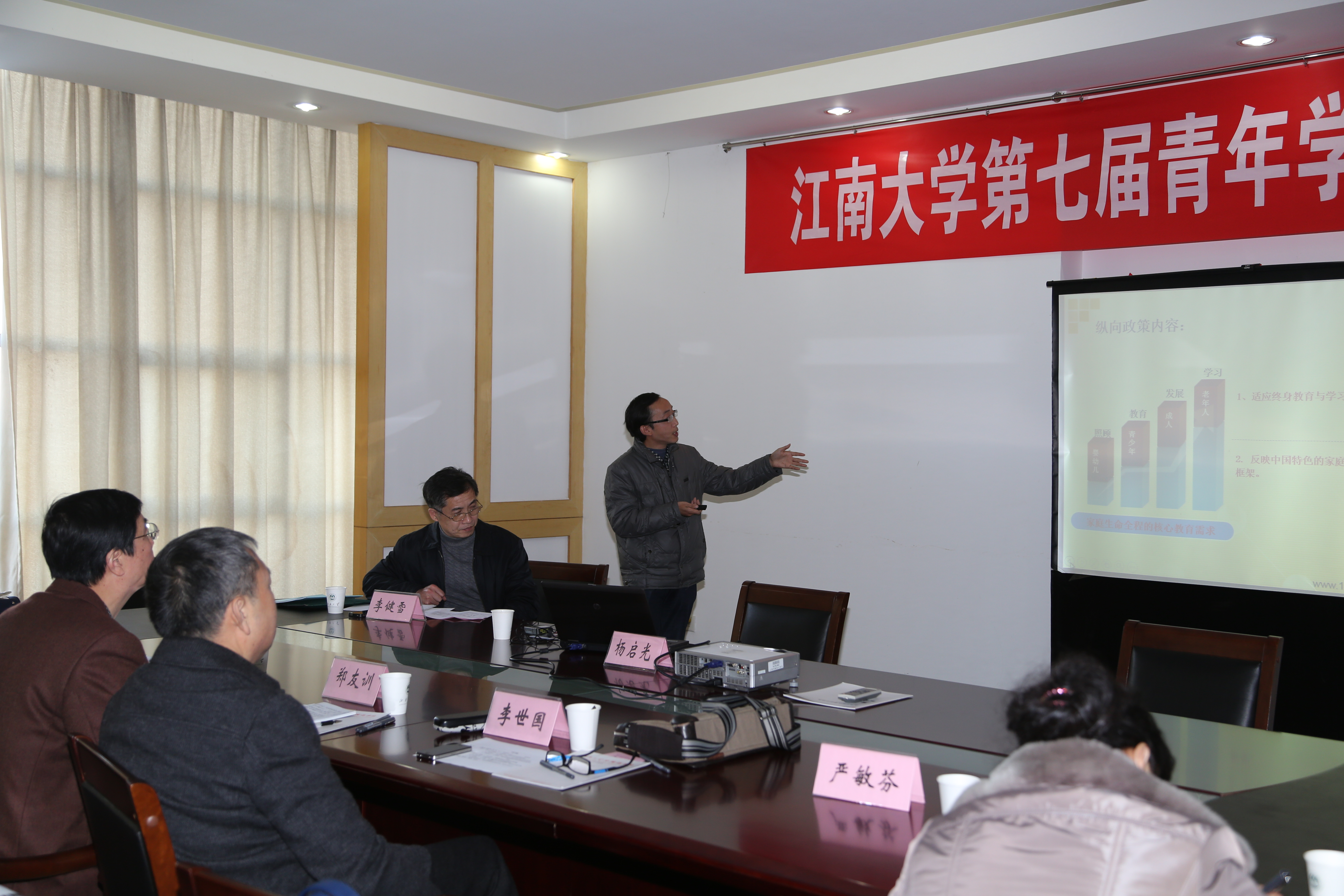 分会场报告会也为青年学者搭建了自由交流、互相学习、互动展示的平台,来自设计、人文和外语的4位优秀论文获得者宣读了各自的论文。人文学院的杨启光教授和韦雪艳老师分享了各自的论文“建立以家庭为视角的中国发展型教育政策体系“和”小微型企业创业者创业学习、差错取向与机会识别的关系“。杨启光教授针对中国人口和家庭变迁与教育现代化转型要求,分析我国家庭生命周期不同发展阶段的教育政策需求内容,提出以终生教育思想为指导,建立基于家庭的教育政策目标、内容与实践策略体系,提升家庭生活质量,建立社会友好型幸福家庭。而韦雪艳老师的论文则采取问卷调查法,研究了小微型企业创业者的创业学习、差错取向与机会识别之间的关系,为提升创业者成长提供了实证证据。
