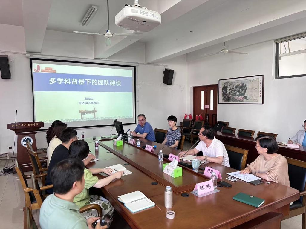 为贯彻学校“奋进计划”精神,有序推进学院第八轮任期目标中教学、科研任务的落实,江南大学开云手机登录入口于2023年6月28日下午邀请原江南大学校长助理、宜兴食品与生物技术研究院院长张光生教授为师生作了题为“多学科背景下的团队建设”的学术讲座,学院各教研团队负责人及全体成员参加了本次讲座。