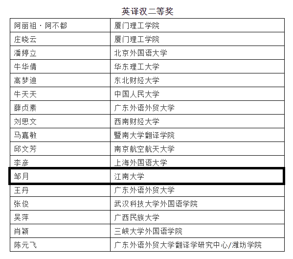 据悉,本次大赛面向45岁以下的海内外广大翻译工作者和翻译爱好者广泛征稿,本届竞赛分别设立汉语与英语、法语、俄语、西班牙语、阿拉伯语五个语种双向互译,共计十个比赛项目,参赛者可任选一项或同时参加多项竞赛。自今年1月中旬赛事发布公告开始,到5月下旬参赛稿提交截止日期前,邹月同学在开云手机登录入口英语系孙志祥教授的指导下,数易其稿,对译文精益求精,经过激烈的角逐,邹月的参赛作品获得英译汉二等奖。