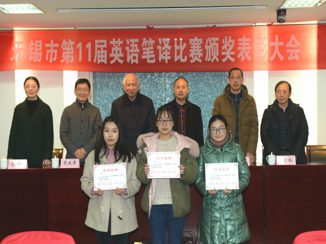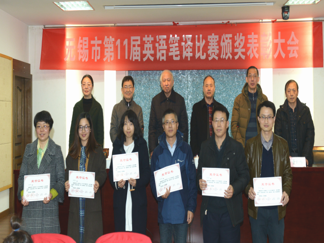 无锡市第11届英语翻译比赛颁奖表彰大会于2018年12月7日下午1:30至2:30在江南大学文浩馆205会议室举行。获奖选手、优秀指导老师及主办方领导近80人参加了会议。