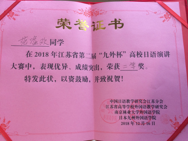 我院学子在第二届“九外杯”江苏省高校日语演讲比赛中喜获佳绩