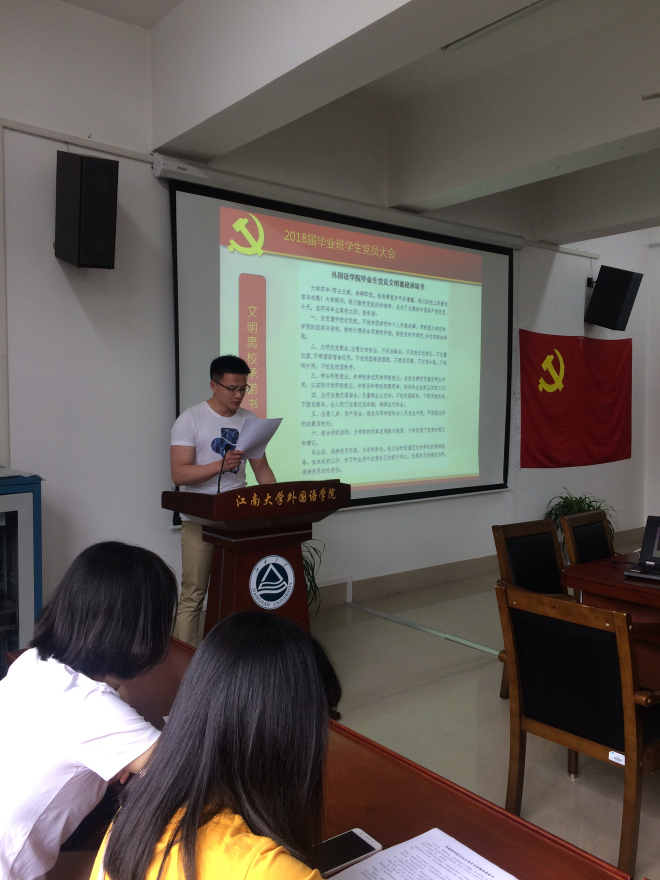 葛正东宣读毕业生党员文明离校承诺书