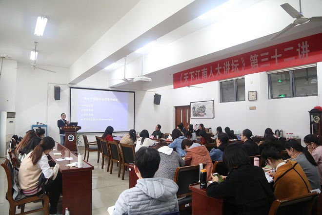 针对外语专业毕业生从事中小学外语教学人数众多的特点,为提高我院研究生与本科毕业生对中小学外语教学与教师职业的了解,11月7日下午,外语学科优秀校友、无锡市英语学科带头人、无锡市教育科学研究院包丰教研员应邀回母校讲学。包老师以“漫谈初中英语教学及其研究”为题,为外院学子的求职之路与教学生涯“传道解惑”。江南大学校友总会林云鉴秘书长、开云手机登录入口刘伯贤副书记与朱义华副院长,研究生二、三年级同学与部分老师以及本科生参加了本次活动。活动由刘伯贤副书记主持。