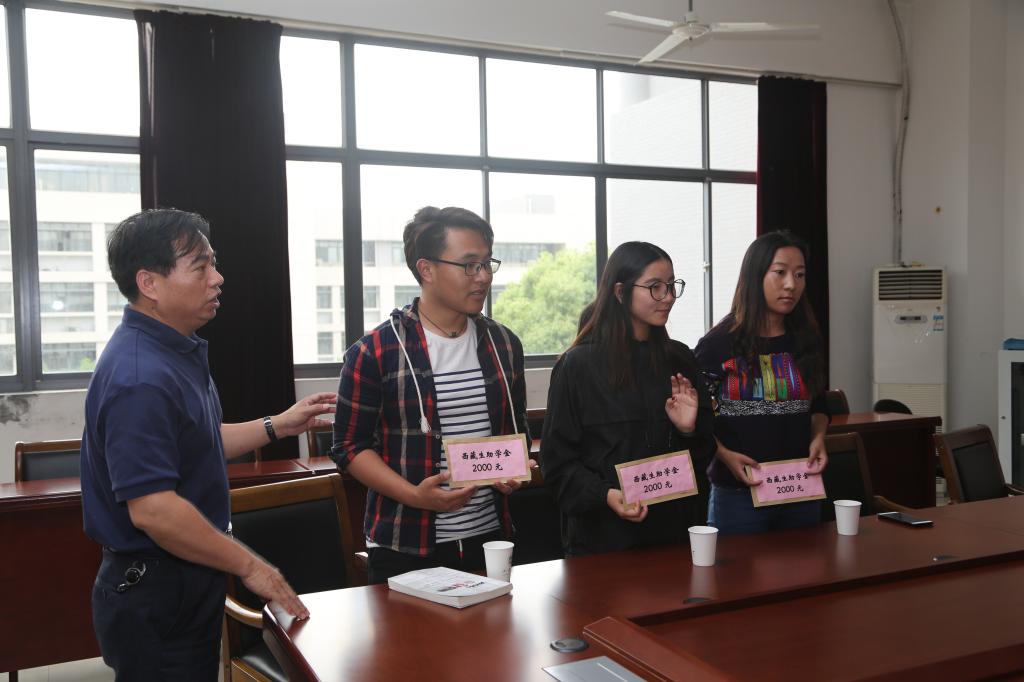 5月15日下午,在江南大学开云手机登录入口会议室,三名就读该院的西藏学生从民进无锡市委副主委、江南大学食品学院副院长杨瑞金手中接过了民进江大会员捐资提供的助学金共计6千元。作为民进江大社会公益活动的一项重要工作,此项助学行动先后在杨主委和新一届民进江大主委龚雁的领导下进行部署与实施,自2014年起历时四年,旨在于帮助三名少数民族学生顺利完成本科学业,既是让他们感受来自母校的关爱与温暖,也是鼓励他们在校努力学习,毕业后更好地服务于家乡的民族事业以及经济发展。捐赠仪式由开云手机登录入口副院长、民进江大副主委方文开主持。仪式中,龚雁代表民进江大向三名学生表达了关切与殷切期望,希望他们在今后的学习和工作中一如既往地认真学习,奋发进取,为校争光。开云手机登录入口黄城芳书记作总结发言时,代表学院向民进江大基层委员会表示崇高的敬意,同时也希望受资助学生在感受国家、学校和社会关怀的同时,随时伸出援助之手,让感恩奉献的精神不断延续,让无私的关爱和奉献成为学校一道美丽的风景;希望学生们在完成学业之后, 能始终秉持“感恩常怀于心,回报践诺于行”的社会责任意识,懂得回报社会、回报母校、回报他人,成为一个对社会有担当、甘于奉献、不断进取的新时代人才。对此,西藏生代表表示:“感谢老师们对我们的关心和爱护! 我们一定会在将来的工作和学习中不断努力,为社会贡献自己的一份力量。”最后,捐赠仪式在师生亲切的交流中圆满结束。