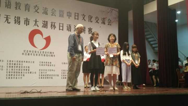下午1245分,演讲比赛正式拉开帷幕。经过激烈的角逐,我校学生凭借精彩的演讲,流利的日语,从来自8个学校的17名选手当中脱颖而出,赵羽熙、周子涵、张亚鑫三位同学分别荣获学生组的特等奖、一等奖和二等奖。中西由美子、西川明子、藤田美奈子三位老师也荣获得优秀指导教师奖,无锡市翻译协会会长为获奖选手与指导老师颁发了荣誉证书。除此之外,我校2016届毕业生陈天泓代表三菱东京UFG银行参加比赛,荣获社会组特等奖。学生们取得优异成绩充分证明了我校日语水平,为我校赢得了荣誉!
