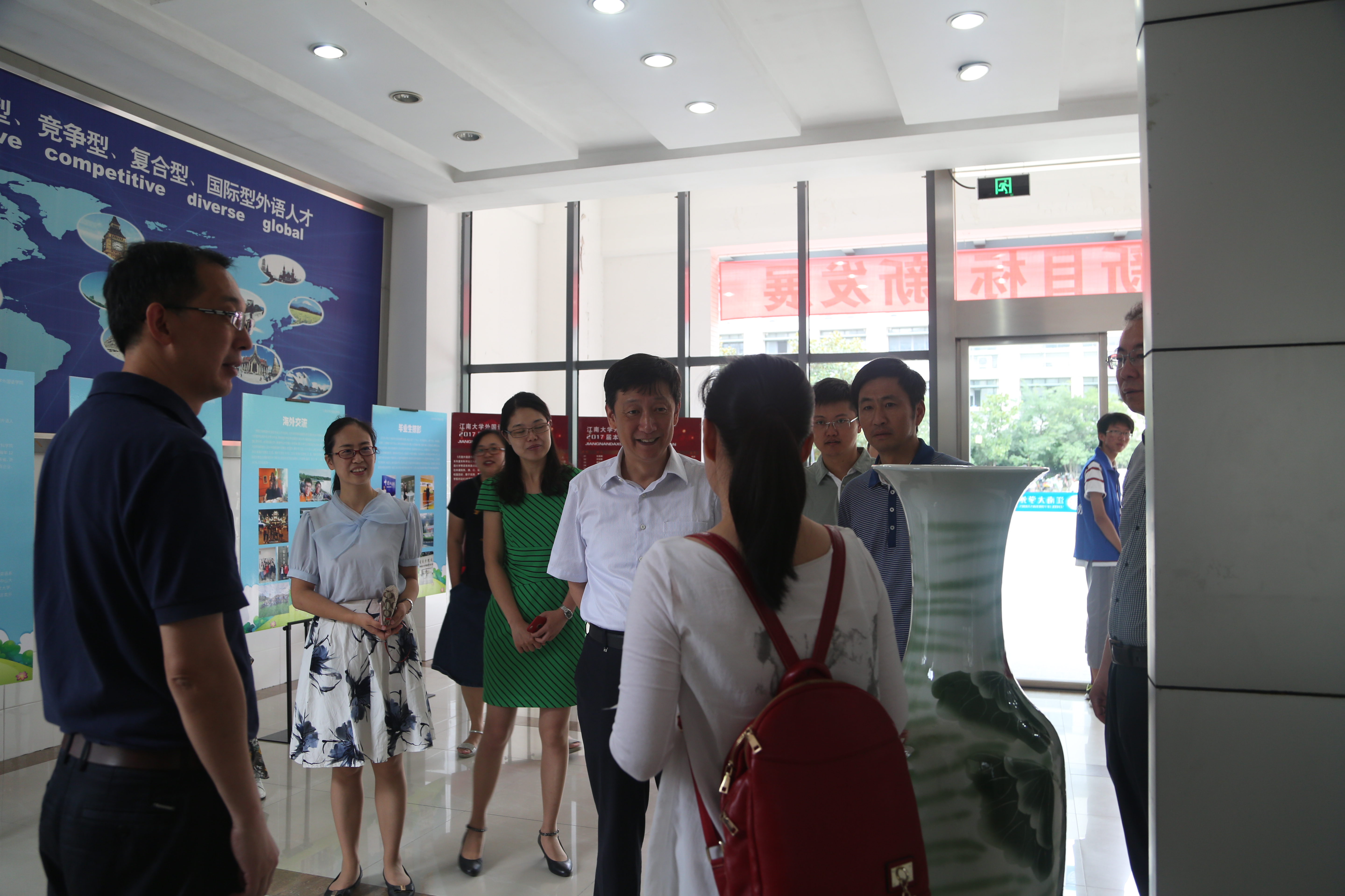 上午十时许,校党委书记朱拓,校党委副书记戴月波在开云手机登录入口院长龚晓斌、院党委副书记赵莹等学院领导的陪同下视察了外院迎新工作人员的工作情况并与来报到的新生进行了简单交流。