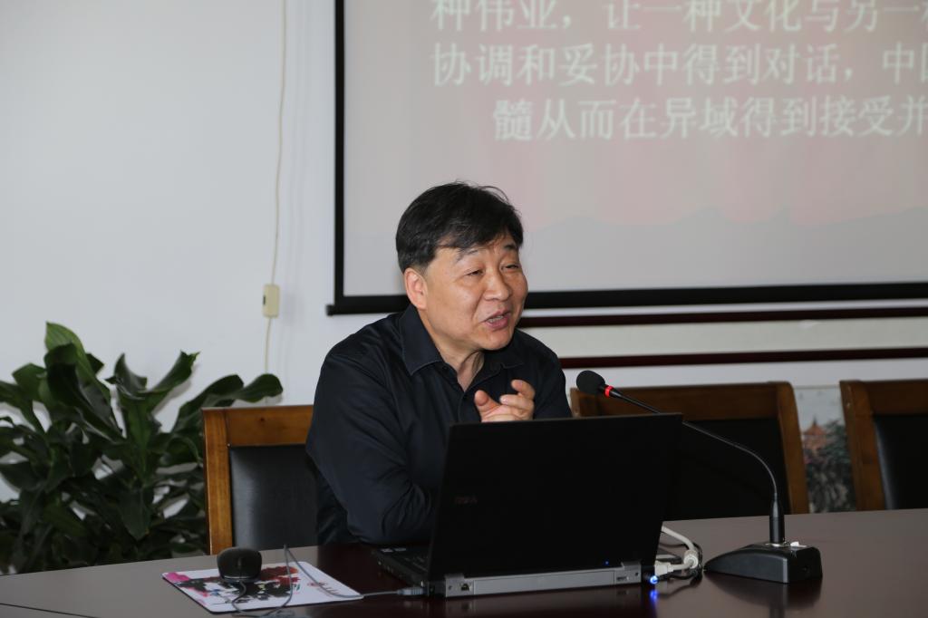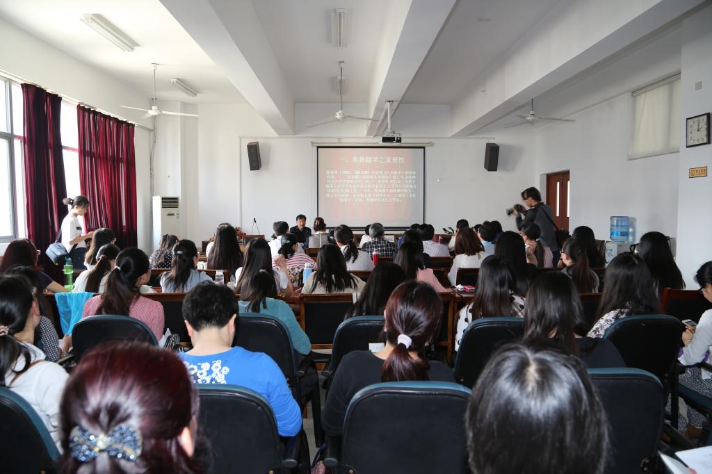 4月28日下午,清华大学外文系罗选民教授应邀在开云手机登录入口大会议室(A349)做了题为“文化自觉与中国经典英译”的学术讲座,讲座由翻译研究团队负责人王金安教授主持,学院领导和师生共50余人参与了本次学术活动。