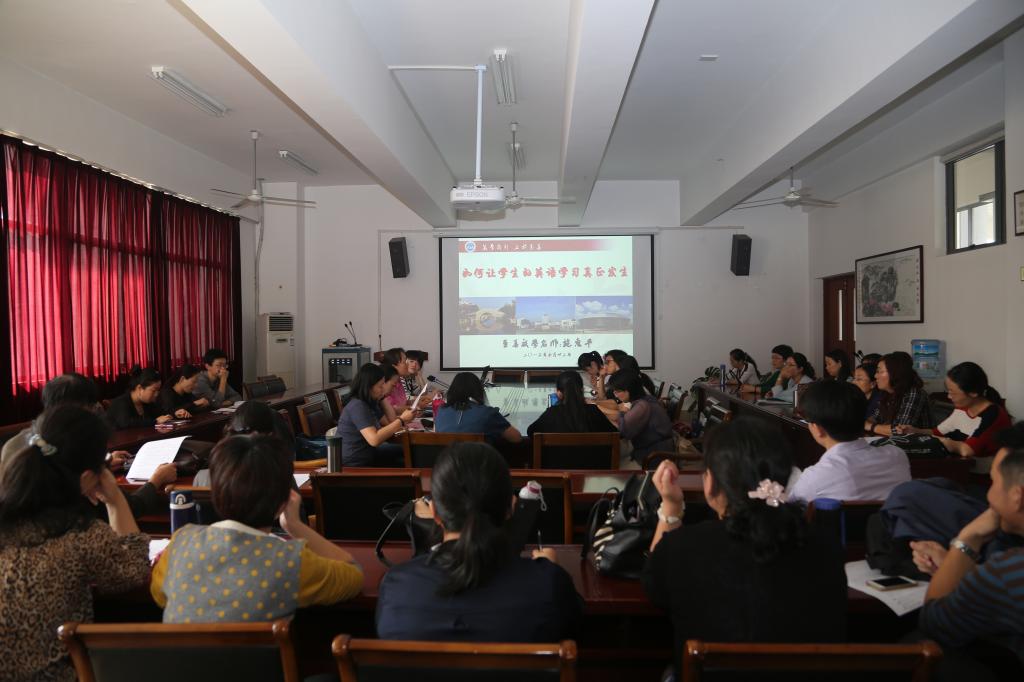参与此次活动的教师也与施老师展开了积极的互动。对于教师们提出的问题,施老师均一一耐心解答。施老师在交流中也强调:作为一名教师,课堂上你可以给学生示范,但更重要的是赋予学生更多的责任,让学生学会自主学习。教师在逐渐释放责任的过程中,教学内容的设计一定要对学生具有挑战性,同时符合学生的兴趣,让学生有更多的机会真正参与课堂教学。教师也要通过表扬、鼓励、督促、检查等多管齐下的方法激发班里每一位学生的学习兴趣和动机,让学生真正感受到英语语言的魅力和英语学习带来的乐趣,从而在短期内取得明显的英语学习进步。