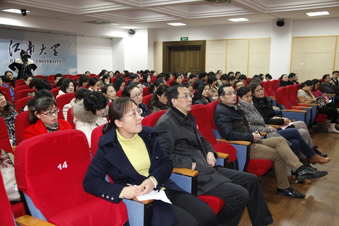 11月25日下午,“江南大学2015暑期大学英语教师海外培训汇报会”在文浩馆205报告厅如期举行。人事处张影陆处长、国交处钟芳处长、教务处曹栋处长、学院龚晓斌院长、黄城芳书记、李健雪副院长以及我院基础部、拓展部、英语系全体教师近100人参加了此次汇报会。会议由开云手机登录入口副院长施惠平主持。