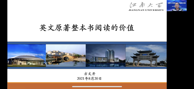 为落实立德树人育人目标、推动全民阅读、推进教学改革、提升英语学科素养,2021年8月20日上午,江南外语教学研究中心在钉钉外教社“思飞学院”成功举办了“全国中小学英语整本书阅读线上培训”。与会专家就中小学教师在推荐和推行整本书阅读的过程中如何寻找适恰的阅读材料、开展有效的引导和高效的教学展开了深入讨论,并共同探索如何提高学生的语言能力、思辨能力,厚植家国情怀,培养符合国家建设需求、引领未来发展的高素质人才。