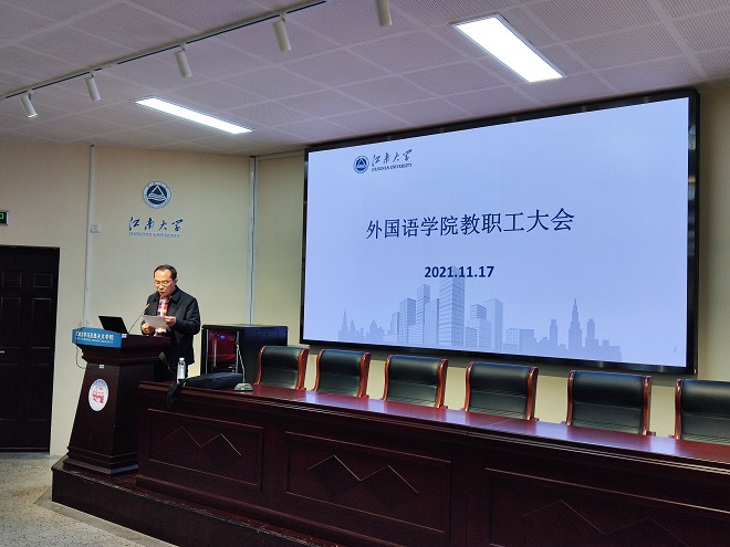 会议邀请了校党委常委、党委宣传部部长倪松涛作党史学习教育专题宣讲。倪部长以《长征精神》为题,厘清了关于长征的基本概念,分析了长征胜利的根本原因,挖掘了长征精神的基本内涵。他指出,长征精神是具有原创意义的民族精神,我们要弘扬伟大长征精神,在新的长征路上继续奋勇前进。宣讲使用了丰富鲜活的史实,加入了精辟深刻的分析,受到教师们的欢迎。