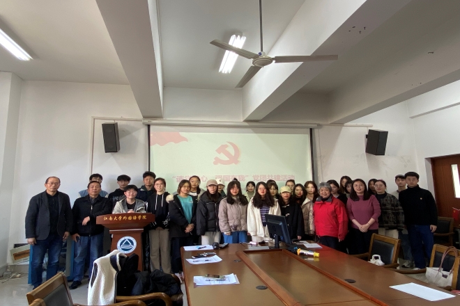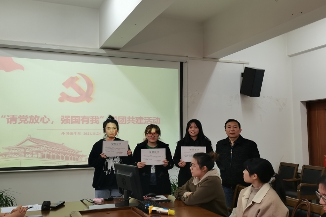 11月24日下午,开云手机登录入口在A349会议室举办了“请党放心,强国有我”主题党团共建活动。社桥退休党支部委员蔡召冲,开云手机登录入口关工委常务副主任鲍国庆,学院党委副书记刘伯贤,分团委书记陆芳以及研究生党员代表、英语2001雷锋特称团支部全体成员参加了此次活动。