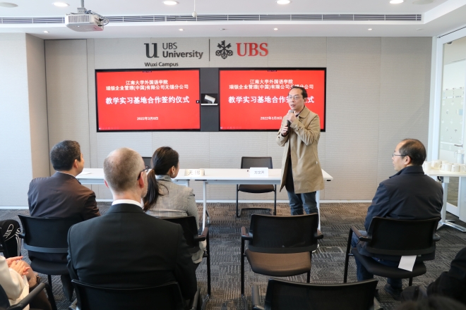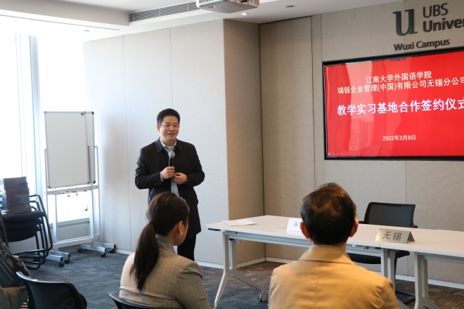 3月8日上午,江南大学开云手机登录入口与瑞银企业管理(中国)有限公司无锡分公司合作共建教学实习基地签约授牌仪式在瑞银无锡分公司恒隆总部举行。梁溪区组织部副部长王伟、开云手机登录入口院长方文开、学院调研员黄城芳、学院党委副书记刘伯贤、瑞银企业管理(中国)有限公司无锡分公司执行董事张晶等共同出席了签约仪式。