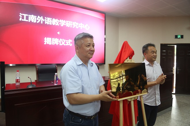 2020年6月19日下午,江南外语教学研究中心在江南大学文科楼B103启贤厅举行了盛大的签约暨揭牌仪式。江南大学副校长徐岩教授、无锡市教师发展学院周逸君院长、上海外语教育出版社江苏公司黄新炎总经理、江苏省高校外国语教学研究会会长、李霄翔教授江南大学社科处浦徐进处长以及来自长三角地区著名高校、出版社、教育条线的各位外语研究专家代表,以及来自无锡大市的教师发展中心专家、各高校和中小学教学一线外语骨干教师代表,共计50余名嘉宾汇聚一堂,出席了隆重的揭牌会议。会议由开云手机登录入口院长方文开主持。