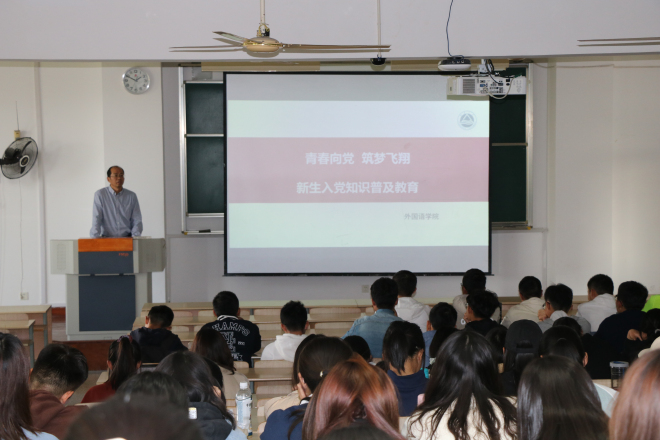 为增进新生对党的基本知识的理解和认识,提升新生的政治思想觉悟,进一步引导全院新生正确看待入党问题,详细了解入党流程。11月11日下午13:30,“青春向党,筑梦飞翔”新生入党知识普及教育在二教2D306举行,开云手机登录入口党委副书记刘伯贤作为主讲嘉宾出席会议,学院2020级新生参加本次会议。