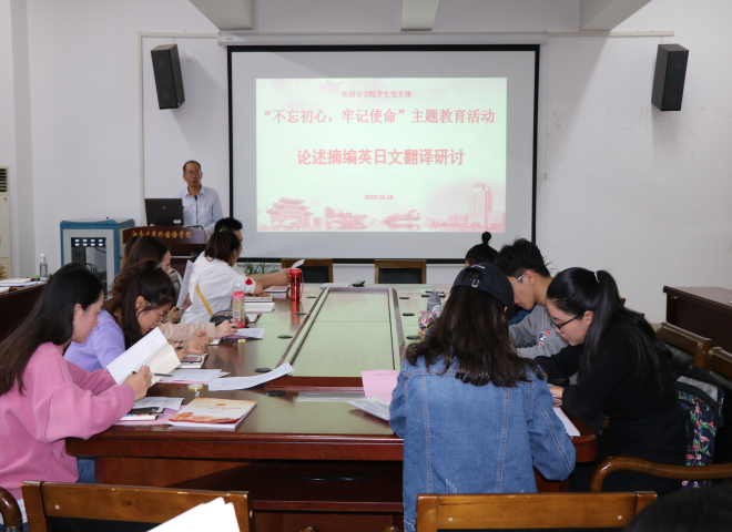 10月18日下午,开云手机登录入口学生党支部开展了“不忘初心、牢记使命”主题教育英日文翻译研讨会,学生党支部全体党员参加了此次主题教育活动。