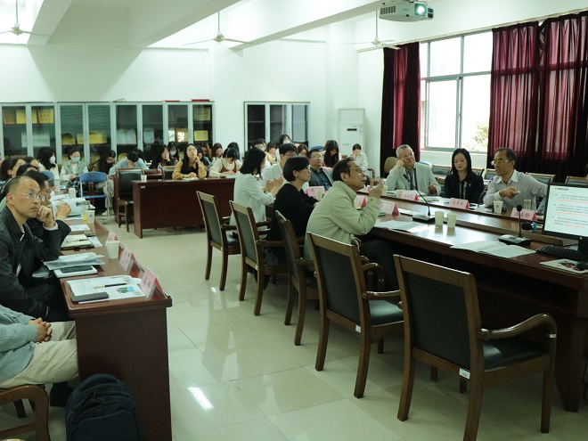 随后,在孙志祥教授的主持介绍下,西交利物浦大学张霄军教授和华为2012实验室南研分部张建农部长分别作了发言。张教授从人工智能给教育带来的震动以及高校教育者如何应对这一问题两个方面,对人工智能时代给翻译教学带来的革新与启示发表了看法。张教授通过“大型语言模型(LLM)”工作原理以及学界对抄袭的定义标准来解释人工智能可能带来的影响,并给出了立法规范人工智能使用的应对方案。此后,张建农部长以“人工智能革命大场景下需要怎样的翻译人才以及如何培养”为主题发表演讲。张部长首先对翻译1.0到4.0的不同含义进行了阐释,介绍了集自然语言处理能力和知识储备为一体的人工智能对传统翻译带来的挑战;接着从学校教育、翻译企业等方面阐明翻译行业对人工智能技术的积极响应;最后结合自身经历对翻译人才培养给出了相关建议,表示学生应当关注国际咨询、学习优秀人才思维模式。