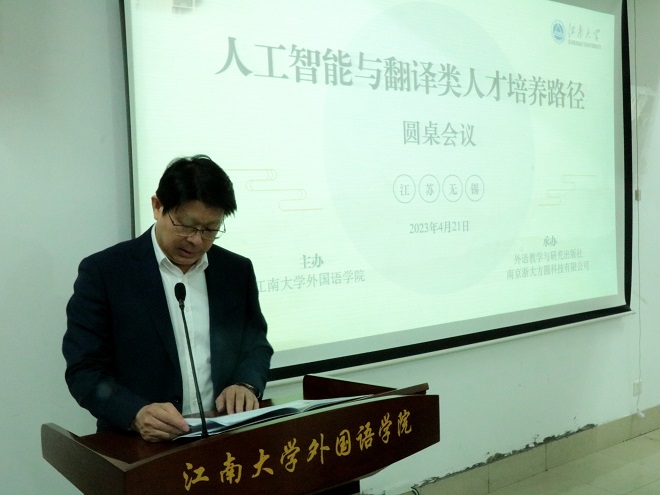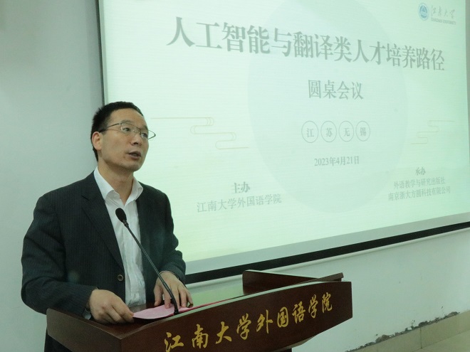 为促进翻译教育发展,推进翻译类人才培养模式的改革与创新,提高翻译教育的质量和水平,江南大学开云手机登录入口于2023年4月21日特别举办“人工智能与翻译类人才培养路径”圆桌会议。会议邀请高校学者和行业专家共同探讨人工智能对翻译类人才培养的影响和高端翻译人才的培养路径。江南大学副校长堵国成、江南大学社会科学处处长王建华出席会议并致欢迎辞,江南大学开云手机登录入口各教师协作主持会议,学院师生共同参与会议。