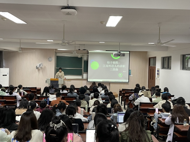 在去年的秋招中,张龙飞入职中建科工集团。分享中,张龙飞围绕“认清自己”、“信息获取”、“面试准备”三个方面进行。他结合自己的实际求职经历给现场的学弟学妹提供了一些建议,分享了一些求职实用工具。分享中,张龙飞说:除了上述的收集信息、踏实努力之外,我认为求职规划还需要一种有更为宏观的思考,一种大历史的眼光,即把个体命运放到整个时代洪流、国家进程中去考虑。最后,他以北大钱理群教授之问作为结束语:世界往何处去,中国往何处去,“我”会往何处去?