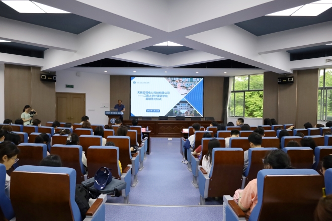 捐赠仪式后,无锡云程电力科技有限公司首席执行官盛昊以“敢拼敢梦,砥砺前行”为主题为现场同学带来第二十三期“遇见更好的自己”讲座。盛昊在讲座中分享了自己的求学故事和工作经历,他详细介绍其公司工作条件,并就同学们提出的问题给予详细回答。现场气氛热烈,学生受益颇多。