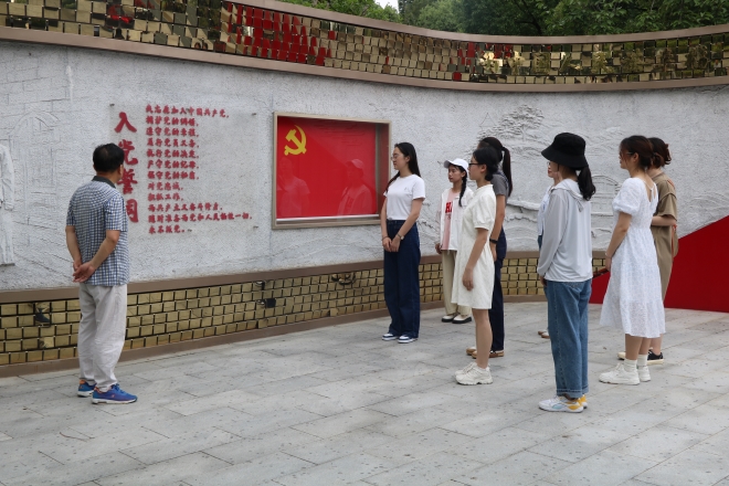蔡召冲老师为同学讲解当地党建文化