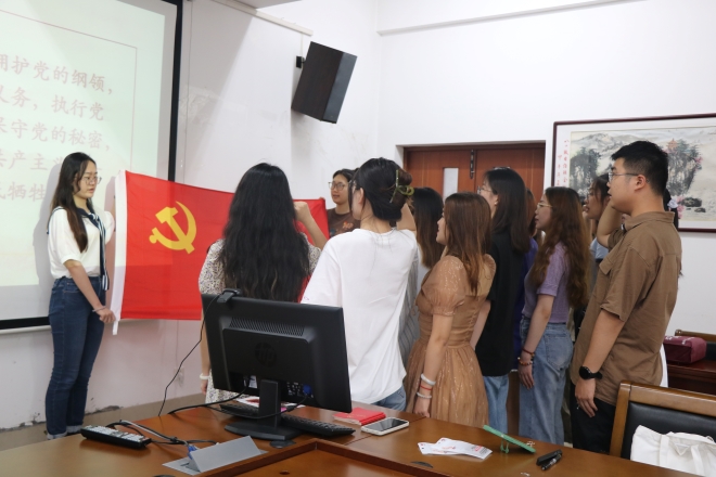 时值“七一”来临之际,为教育党员始终保持党的先进性,激发新党员的责任感和使命感,不忘初心,开云手机登录入口在6月19日14:30于外院楼A349举行新党员“七一”入党宣誓仪式。开云手机登录入口党委副书记刘伯贤、关工委常务副主任鲍国庆、委员吴艳敏、分团委书记陆芳出席宣誓仪式。本次活动共20名新发展党员参加,分团委书记陆芳主持会议。