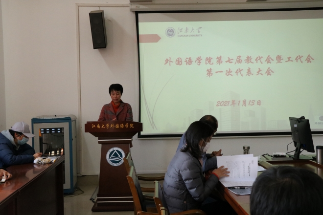 学院分工会主席华芒老师做工会工作报告