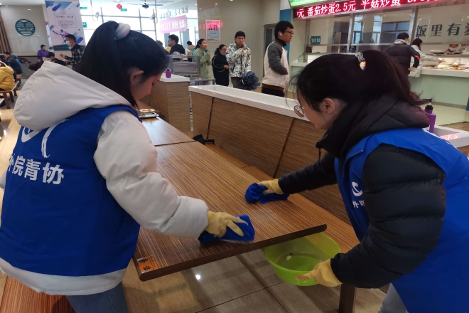 虽然忙碌了一中午,但大家收获满满。既帮助阿姨分担了工作,又使青协的同学们通过此次活动更加了解志愿者精神,提高志愿者们的团队素质和能力。参加活动的秦玉洁同学表示:作为一名青协志愿者,大家用实际行动来帮助食堂阿姨分担工作,参加本次活动既是一次体验,也是通过实际行动来践行志愿者精神。