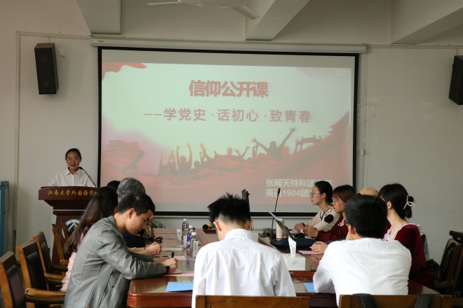 4月28日下午2:00,“学党史•话初心•致青春”主题信仰公开课在开云手机登录入口A349举行。江南大学原党委副书记、关工委常务副主任娄国栋、开云手机登录入口分团委书记陆芳、英语1904班主任高松怡、19级辅导员苗文建出席本次活动。17级优秀学生代表、英语1904张闻天特称团支部全体成员以及20级班团干部参加了此次公开课。信仰公开课由盖文静同学主持。