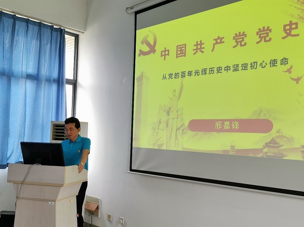 本次学习共分为三个环节。首先党支部书记邢嘉锋以“从党的百年光辉历史中坚定初心使命”为主题,从“中国共产党党史概述”、“全党开展学党史背景”、 “如何联系实际学党史”三个方面给全体拓展部党员老师上了一堂图文并茂、精彩生动的党课。邢老师就如何联系实际学党史提出了几点建议:首先结合当时学习的指定书目明确四点要求:学史明理、学史增信、学史崇德、学史力行;汲取四个力量:思想力量、信仰力量、道德力量、实践力量;达到四个目的:学党史、悟思想、办实事、开新局。学习的重点可以归纳为六个“进一步”:1.感悟思想威力,增强用党的创新理论武装全党的政治自觉性;2.把握历史发展规律和大势,抢抓机遇,赢得发展的历史主动;3.深化性质宗旨的认识,始终保持马克思主义政党的鲜明本色;4.总结党的历史经验教训,不断提高应对风险挑战的能力水平;5.发扬革命大无畏精神,始终保持共产党员艰苦奋斗昂扬精神;6.增强党的团结和集中统一领导,要确保全党步调一致向前进。