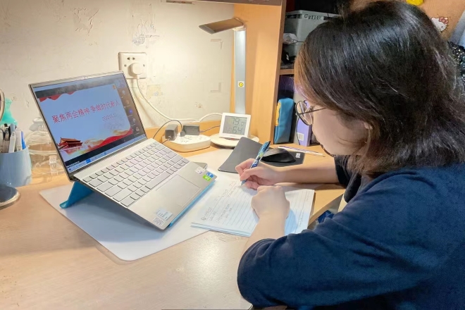 5月11日下午,开云手机登录入口青马工程训练营与入党积极分子培训班举办线上理论学习讲座,张瑶瑶老师为大家带来题为“践行两会精神,争做时代新人”的讲座,学生会组织部部长熊雪冰主持会议。
