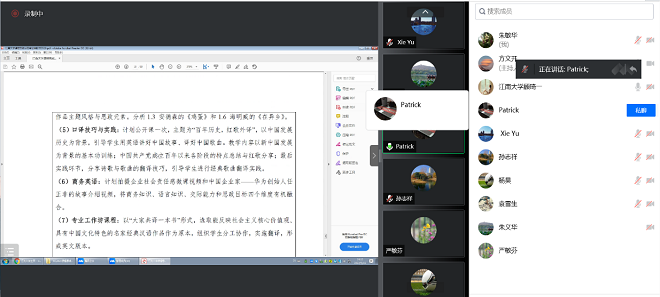 顾琦一副院长强调需要结合英语专业特点、7门示范课程的特点,在教学目标的设定、教材与课程资源建设、课堂教学、评价评测全过程结合课程思政元素,有机融入课程思政内容。同时建议结合一流课程、在线课程、在线教学等课程建设与教学活动,协同开展课程思政教学工作。