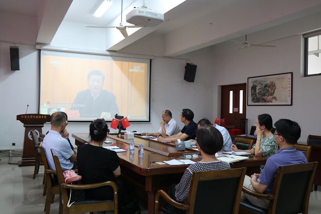 方文开院长和史志洪书记为荣获学院2021年度单项奖荣誉的教师颁发证书。随后新进教师杨勇、新晋升教师张俊萍、获奖教师李文、撒忠清和管纪龙作为教师代表发言,其他与会教师纷纷畅所欲言。大家表示,在学院感受到积极向上的教学科研氛围和团结温暖的人文环境,作为外语人要不忘教师的初心,以立德树人为己任,在教学和科研的道路上奋勇向前,为学院发展贡献自己的力量,努力成为党和人民满意的“四有”好老师。