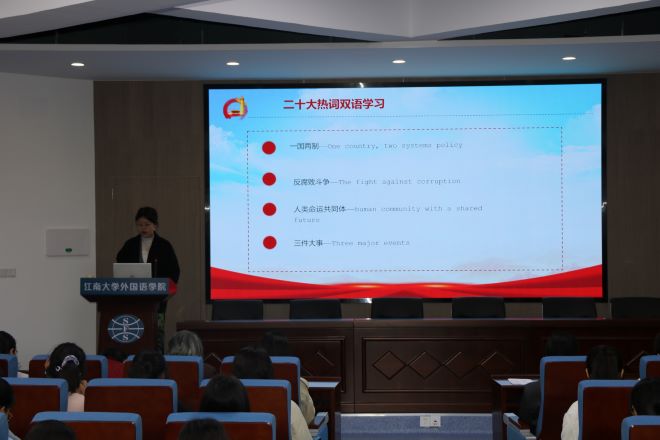 首先,英语2101班团支书柏晶同学通过解读二十大报告向大家讲述了时代赋予青年人怎样的时代使命,以及作为新时代的青年应如何推进文化自信自强,铸就社会主义文化新辉煌。她指出,我们作为开云手机登录入口的学生,可以通过“用英文讲党史、分享抗疫故事、翻译中国著作”等方法传播中国声音,传承外语人的使命。