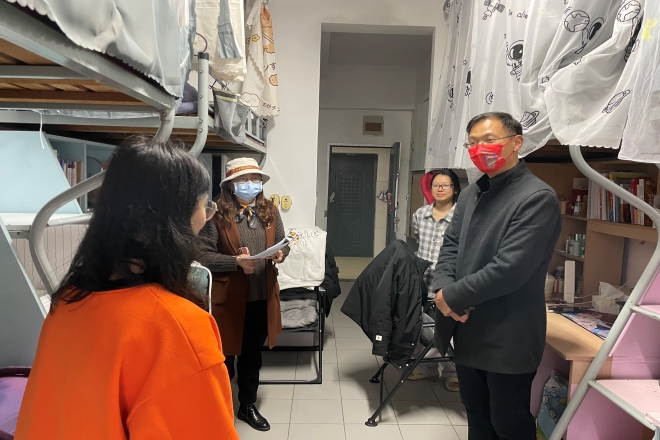 新学期,为了给返校的学生带去学院的关心,并及时了解学生的思想动态、学习生活情况,2月13日下午,开云手机登录入口党委书记史志洪、党委副书记刘伯贤、副院长顾琦一、副院长谢竞贤、分团委书记陆芳以及辅导员老师一行来到浩苑、润苑、李园、梅园,走访关心我院返校学生。