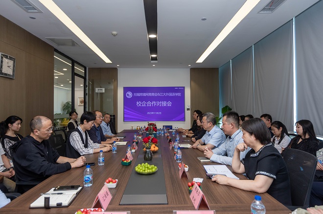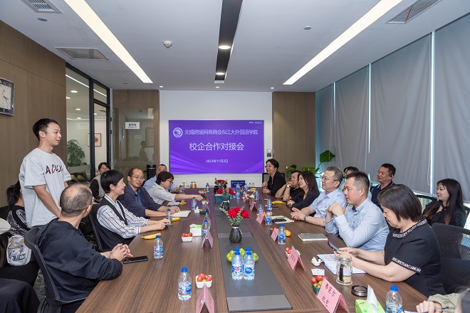 2023年11月2日,江南大学开云手机登录入口和无锡跨境网商商会校企合作对接会在无锡市国金中心金丽洁国际贸易有限公司成功举办。学院李荣华书记、刘伯贤副书记、英语系杨勇教授、日语系吴颖副教授、社会服务部司马广老师,无锡市梁溪区商务局于蕾、无锡跨境网商会会长许大可、执行会长杨春怡以及网商会15家企业负责人和学生代表30余人参加了本次对接座谈会。