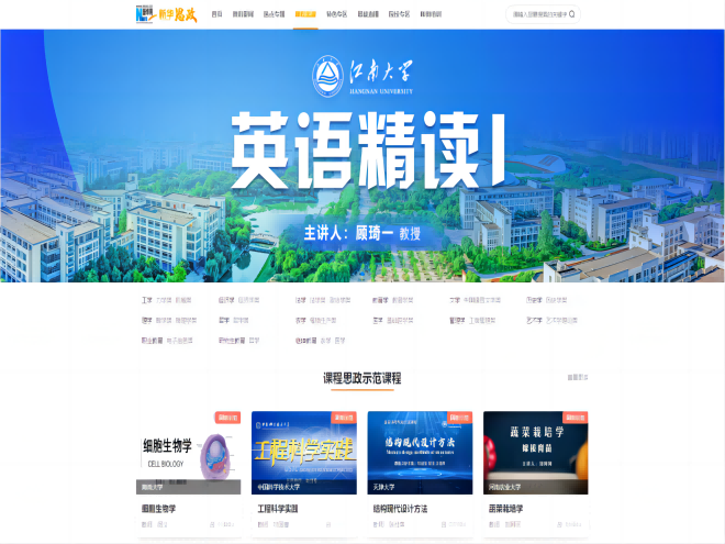 近日,江南大学开云手机登录入口顾琦一教授团队《英语精读I》和谢瑜副教授团队《口译技巧与实践》两门课程的课程思政教学案例上线新华网“新华思政”平台,面向全社会开放共享教学设计、教学视频、教学课件、说课视频等教学资源。