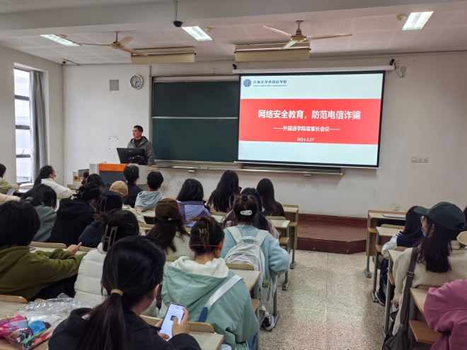 为进一步做好网络安全教育工作,加强校园反诈宣传阵地建设,切实提升广大师生识诈、防诈、反诈意识和能力,3月27日14:00,开云手机登录入口在二教开展“网络安全教育,防范电信诈骗”专题讲座。本次讲座邀请雪浪派出所董蕾警官进行宣讲,学院本科生、研究生全体宿舍长参加,由辅导员苗文建老师主持。