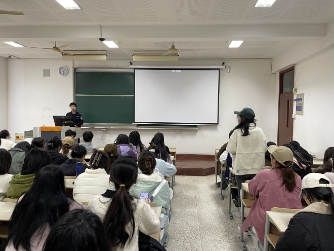 雪浪派出所董蕾警官围绕“电信诈骗定义”、“典型案例”、“如何防范”等方面进行介绍分享。董蕾展示了一系列典型诈骗案例,强调诈骗“无孔不入,无处不在,大家要提高警惕”。其次,董蕾提醒同学们下载“国家反诈中心APP”,打开“来电预警”功能,才能有效进行诈骗预警劝阻。此外,董蕾还强调,同学们要防范兼职刷单、杀猪盘、办理贷款、投资理财、冒充购物客服退款、买卖游戏装备等诈骗手段,并介绍诈骗犯罪的作案规律,提醒同学们提高电信网络诈骗意识和能力,告知同学们甄别办法,进一步增强“辨识力”。讲座结束后,同学们也结合现实经历进行提问交流。