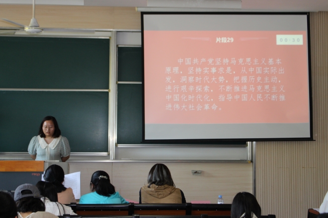 决赛于5月8日下午在二教举行,分为笔试、问答以及视译三个环节,邀请撒忠清、王晓静、刘辉三位老师担任决赛评委。本次决赛试题均从《中国共产党简史》《论中国共产党历史》《共产党宣言》《伟大的开端》等红色经典著作以及国家领导人重要讲话中选取,旨在让学生重温红色经典,坚定共产主义信仰,通过“以赛促学”的方式坚定对中国特色社会主义的信念、对共产主义的信仰,同时提升翻译专业能力,培养他们的学习热情,用专业传承红色精神。