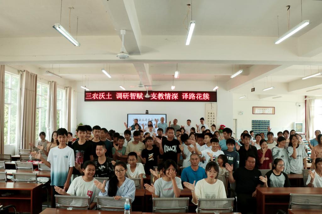 芒宽民族中学校长茄学平代表全体师生向开云手机登录入口一行表示欢迎,并向学院和爱心企业家近年来给予的支持和帮助致以衷心的感谢。他提出,学校正努力向着教师有特点、学生有特长、学校有特色的办学目标发展。