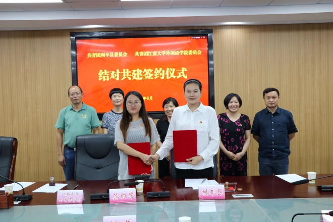 为充分发挥校地团建共建引领作用,以党政引领、政校合作、乡村振兴“联动促民生”为共建思路,以推动双方事业发展为共建目标,整合团县委、学校、乡镇团建资源,团结带领青年赋能高质量发展,8月19日,江南大学开云手机登录入口与中共利辛县人才工作局、共青团利辛县委员会开展结对共建活动。利辛县县政协副主席、县工商联主席何芳,县委组织部常务副部长、人才工作局局长申刘云,县工商联副主席康伟及县委组织部、团县委相关科室负责人,学院党委书记李荣华,党委副书记、副院长刘伯贤,英语系主任杨勇,院长助理、副教授李文,分团委书记顾海星,辅导员苗文建共同出席此次校地结对共建的签约仪式,仪式由共青团利辛县委员会书记江文静主持。