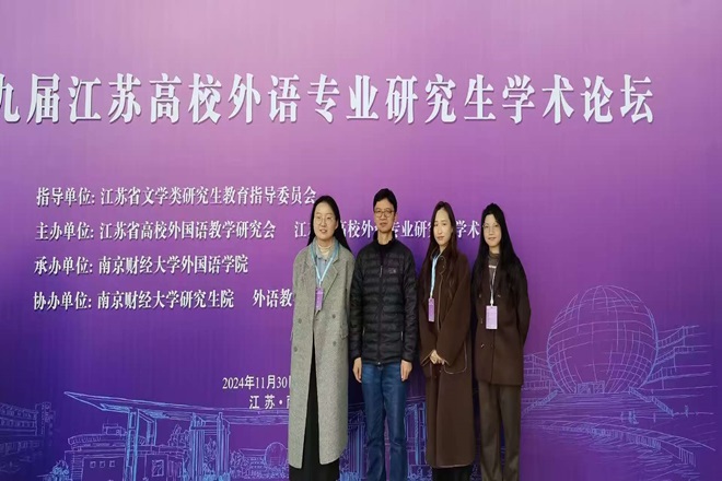 2024年12月1日,第十九届江苏高校外语专业研究生学术论坛将在南京财经大学仙林校区举行。我院带队导师袁雪生和3名研究生代表参加了此次论坛。本届论坛由江苏省文学类研究生教育指导委员会指导,江苏省高校外国语教学研究会主办,南京财经大学承办,并得到外语教学与研究出版社及上海外语教育出版社的协办支持。本次论坛特邀东南大学李霄翔教授、苏州大学朱新福教授、南京大学陈新仁教授等知名学者,围绕外语教学、翻译研究及文学文化领域的前沿课题展开深度探讨。