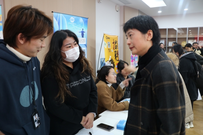 学院党委书记李荣华、学院党委副书记季王飞深入招聘会现场,与用人单位和毕业生进行交流,了解用人单位岗位需求和毕业生就业意向,以促就业为导向加强校企合作,并鼓励求职学生调整心态,抓住机会,积极主动就业。