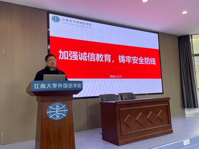 首先,苗文建结合《江南大学课程考核与管理实施细则》、《江南大学学生违纪处分规定》,向大家介绍了诚信考试的基本要求和重要性,强调了考试作弊的严重后果,通过列近期学生发生的考试作弊案例,引导学生们从中吸取教训,认真复习备考,树立诚信考试观念。冬季气温降低,学生宿舍用电安全问题进一步凸显。会议上,苗文建结合学校的《关于加强冬季防火、用电安全管理的通知》、《关于开展学生宿舍冬季用电安全专项检查的通知》,强调了宿舍严禁使用违章电器,严禁违规用火用电等行为。