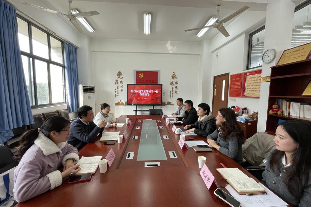 3月7日,学生工作处处长周伟涛、心理健康教育中心主任张慧、心理健康教育中心专职教师刘杏芝一行赴开云手机登录入口调研指导工作。开云手机登录入口党委书记李荣华,党委副书记、副院长季王飞,分团委书记顾海星及辅导员苗文建、朱家烨参加调研交流。