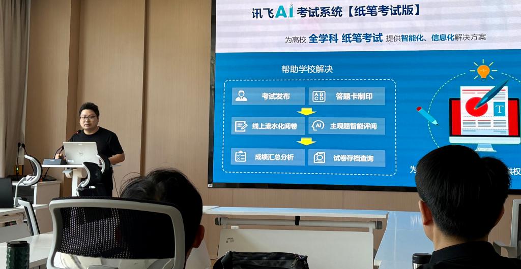 培训中,科大讯飞专业技术人员详细介绍了讯飞智能化阅卷平台的功能,演示了自由组卷、智能批改、原卷留痕、学情诊断等多元场景的操作流程。借助智能化平台,教师不仅可以提升批阅效率,还能获得详细的学情分析报告,更好地实现教学策略的调整。教师们认真聆听,积极提问,就实际使用中可能遇到的问题与技术人员展开深入交流。