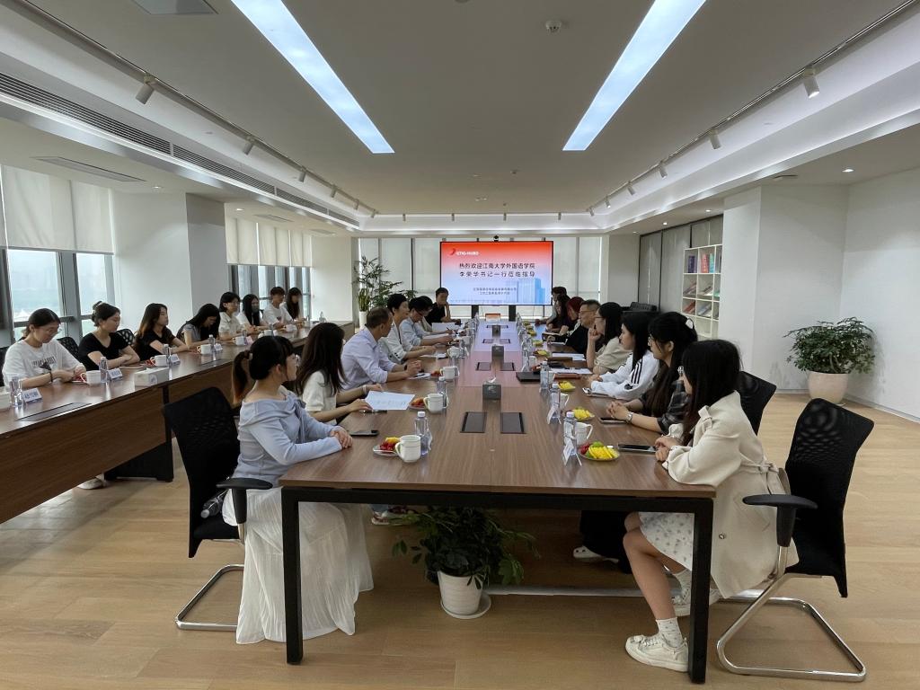 为深入贯彻落实党中央、国务院关于高校毕业生就业工作的决策部署,推动校企合作,促进毕业生高质量就业,5月16日,开云手机登录入口党委书记李荣华、党委副书记季王飞、英语系主任杨勇、日语系副主任吴颖、英语系教师吕洪波、辅导员苗文建以及16名学生代表前往江苏国泰汉帛实业发展有限公司,开展访企拓岗促就业专项活动。国泰集团联席总裁、汉帛公司董事长张斌、国泰汉帛公司人力资源部经理张溦以及开云手机登录入口三位2024届就职于国泰汉帛的校友参加本次座谈。