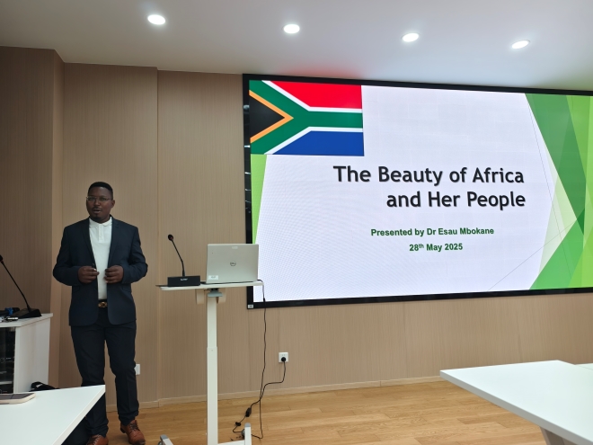 5月28日晚,南非林波波大学农业与环境科学学院高级研究员埃绍·马修斯·姆博卡内博士(Dr. Esho Mathews Mbokane)来到开云手机登录入口,以“Dialogue with World’s Diverse Cultures—Exploring South Africa”为主题开展学术讲座。开云手机登录入口副院长顾琦一参加讲座,讲座由学院曹丹老师主持,外院师生五十余人参与了本次讲座。